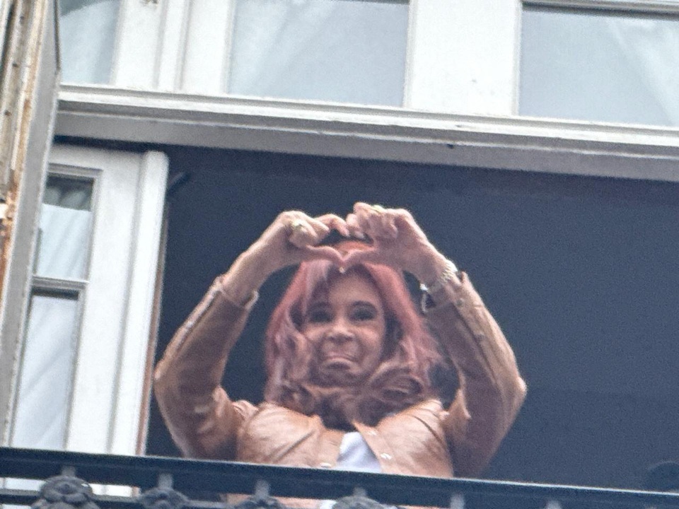«¡Es una presa política!», gritó una mujer cuando la expresidenta Cristina Fernández de Kirchner salió al balcón de San José 1111 a saludar a la militancia que marchó a la casa de la líder justicialista para reclamar su libertad a 100 días de que empezara a cumplir prisión domiciliaria.